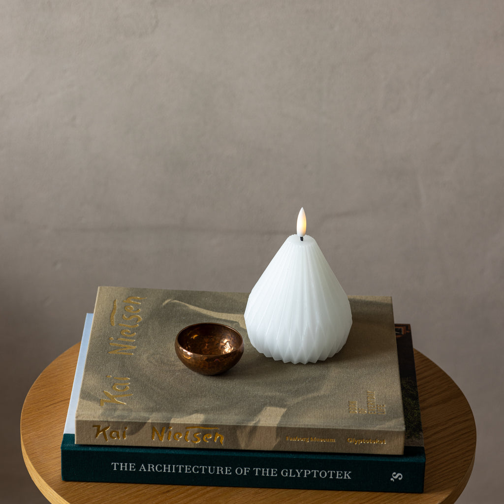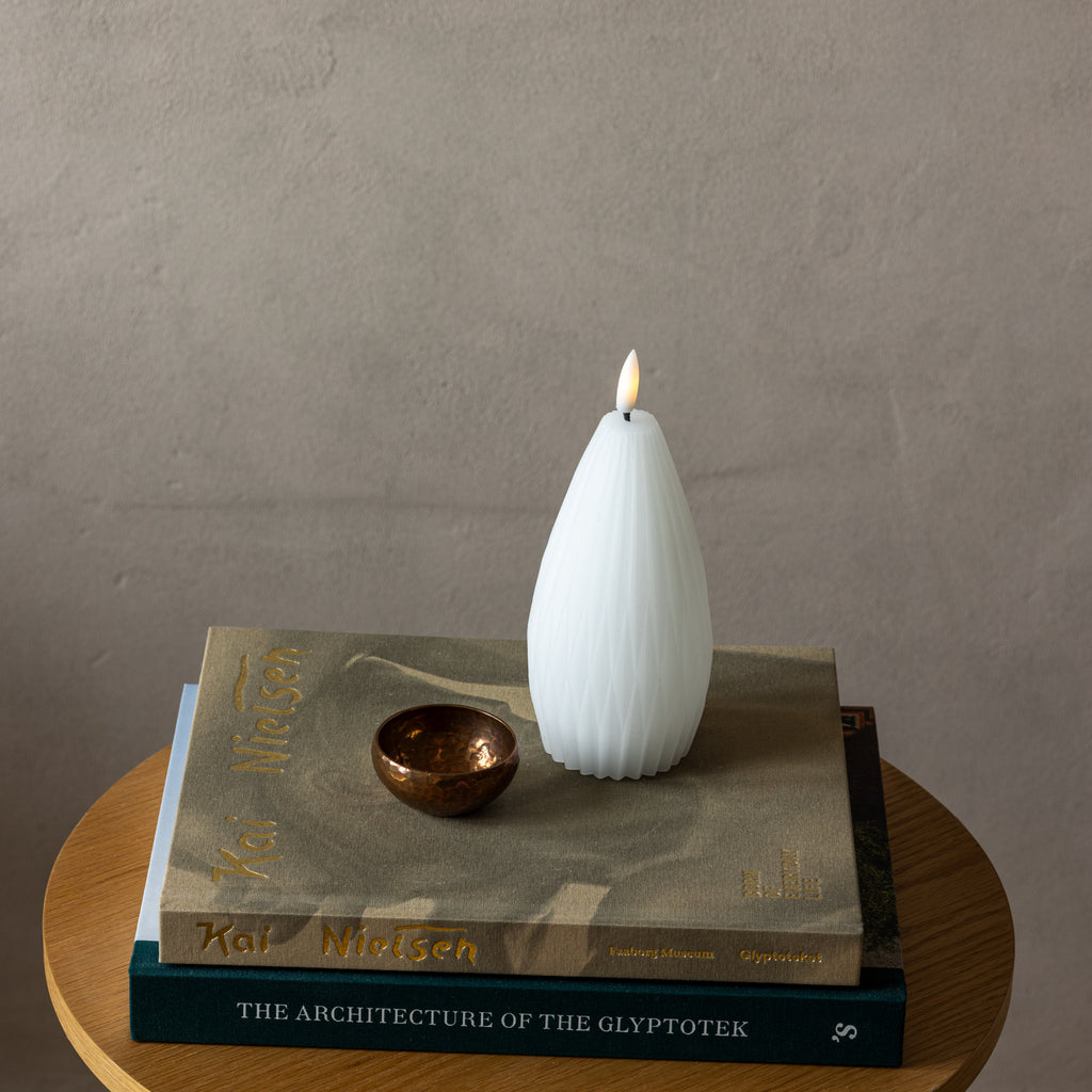 Mit flacher Spitze und 3D-Flamme. Die Spitze der Kerzen sieht aus wie flüssiges Wachs. Dieses „Aussehen” haben wir in der EU unter der Nummer 008389951-0001 als Design registriert. Das macht die Kerzen einzigartig.