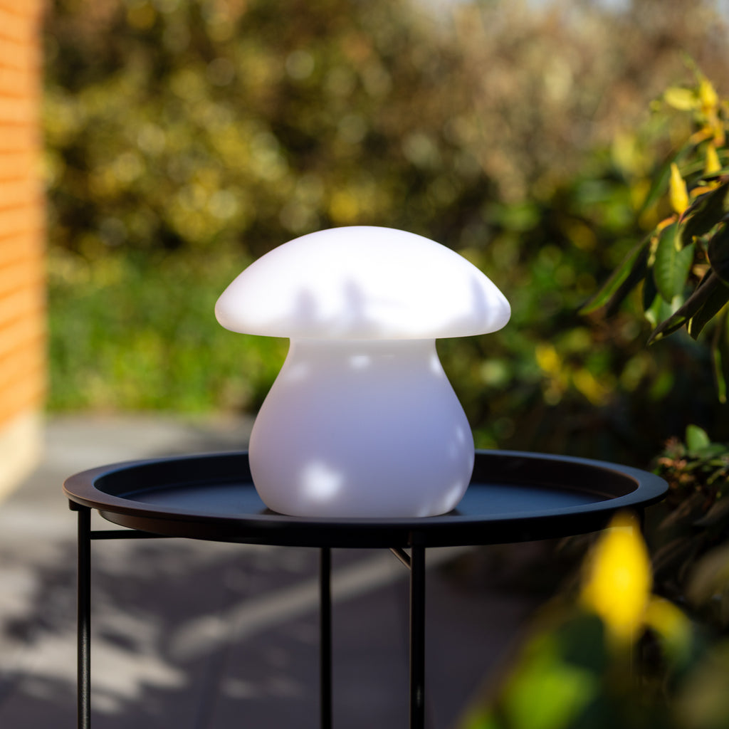 Unser Leuchtpilz - sowohl mit Ladegerät als auch mit Solarzellen. So wird er durch die Sonnenstrahlen aufgeladen. Wenn die Sonne nicht genug scheint, z.B. im Winter, können Sie ihn über das mitgelieferte USB-Kabel aufladen.