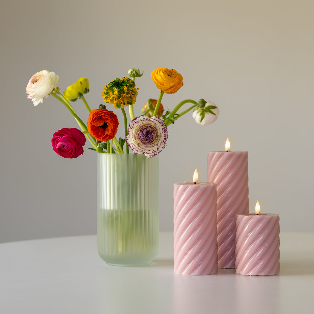 Die gedrehte LED-Stumpenkerze Vega verleiht Ihrer Inneneinrichtung einen modernen Touch. Kombinieren Sie die Vega-Lichter mit anderen Formen und Farben von LED-Kerzen, ohne sich Gedanken über Ruß, schädliche Partikel oder Brandgefahr zu machen.